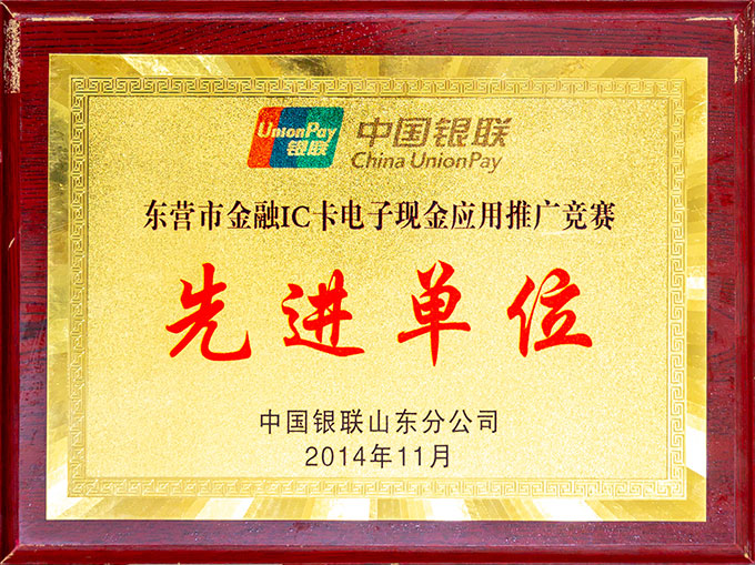 東營市金融IC卡電子現(xiàn)金應用推廣競賽先進單位