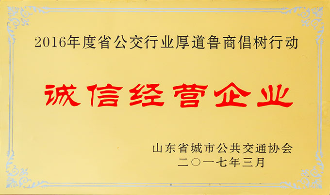 2016年度省公交行業(yè)厚道魯商倡樹(shù)行動(dòng)誠(chéng)信經(jīng)營(yíng)企業(yè)