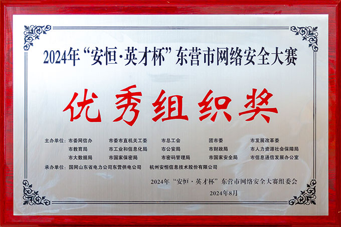 2024年“安恒.英才杯”東營(yíng)市網(wǎng)絡(luò)安全大賽優(yōu)秀組織獎(jiǎng)