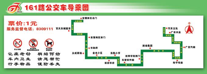 1、161路自汽車五隊發(fā)車經(jīng)湖州路→淮河路→泉州路→瀏陽河路→東八路→運(yùn)河路→泉州路→府前街→東六路→南一路→東四路→運(yùn)河路→膠州路→淮河路→東三路→大渡河路→安慧西區(qū)北門,票價不變。