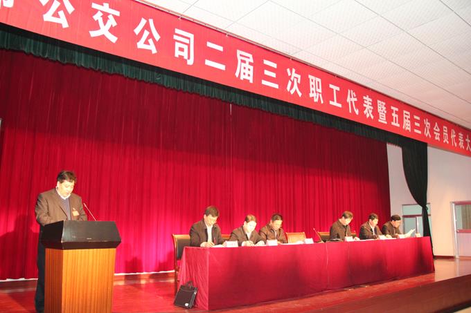 2013年2月27日,市公交公司隆重召開了二屆三次職工代表暨五屆三次會員代表大會。公司領(lǐng)導(dǎo)朱新民、李學(xué)忠、趙龍、崔磊、劉海、劉樂華、孫紅光及74名代表參加了會議。