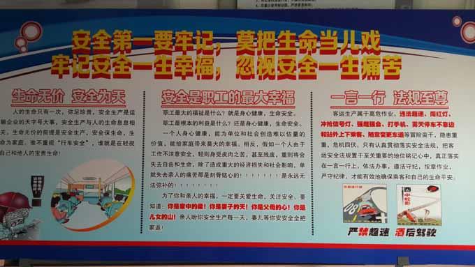 近日,市公交公司汽車三隊(duì)為貫徹落實(shí)好公司第四季度安委會(huì)的會(huì)議精神,做好駕駛員工安全教育,進(jìn)一步抓好車隊(duì)安全生產(chǎn)工作,一是針對(duì)鄉(xiāng)鎮(zhèn)線路的營運(yùn)特點(diǎn),專門出了一期“安全生產(chǎn)黑板報(bào)”,二是專門制作了一幅以“注重安全,關(guān)愛生命”為主題的展板,擺放到大廳里,以此警醒和告誡廣大一線駕駛員,行車中要把安全放在首位,牢記遵紀(jì)守法,按章行車、謹(jǐn)慎駕駛、確保安全。