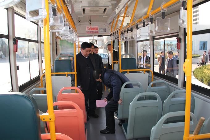 3月14日下午,市人大常委會(huì)副主任閆樹信帶領(lǐng)人大環(huán)城委調(diào)研組一行在市交通運(yùn)輸局局長燕乃敏等相關(guān)領(lǐng)導(dǎo)的陪同下,到市公交公司進(jìn)行了調(diào)研指導(dǎo)。調(diào)研組一行來到東營公交智能調(diào)度指揮中心,首先由市公交公司經(jīng)理朱新民同志簡要介紹了近年來東營公交各方面的工作,而后調(diào)研組一行來到8309111公交服務(wù)中心,進(jìn)行了現(xiàn)場觀摩。最后,調(diào)研組一行來到車場,現(xiàn)場觀摩了公交車內(nèi)的各項(xiàng)服務(wù)設(shè)施并提出了寶貴意見和建議。