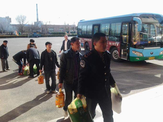 近日,在雷鋒月期間,市公交公司汽車四隊148路、150路文明示范線路部分駕駛員,用他們在公司開展的“文明示范線路”考評中獲得的2000元獎金購買了面粉、大米、食用油、雞蛋等生活必須品,代表車隊全體員工前往東營區(qū)辛店街道敬老幸福園,為年邁的老人送上自己的愛心。