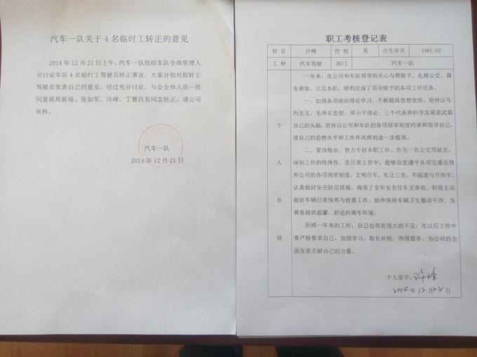 市公交公司人保管理科啟動(dòng)固定期限合同工轉(zhuǎn)正考核工作