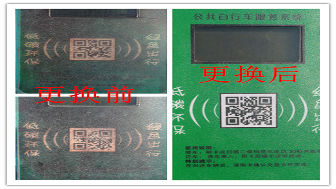 公共自行車系統(tǒng)建成后,由于日曬雨淋導(dǎo)致部分車樁二維碼變得模糊不清,出現(xiàn)了用戶手機掃碼無反應(yīng),無法借車的情況。針對這一現(xiàn)象,市公交公司公共自行車運營中心工作人員積極聯(lián)系生產(chǎn)廠家,重新制作二維碼500張,并及時組織工作人員走上街頭對無法識別的車樁二維碼進行了集中更新,截至目前已全部更新完畢,為市民出行提供了方便。