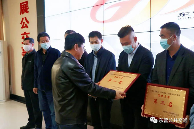 會(huì)前,舉行了公司首屆公交職工“應(yīng)知應(yīng)會(huì)”崗位知識(shí)大獎(jiǎng)賽頒獎(jiǎng)儀式,公司獲獎(jiǎng)單位上臺(tái)領(lǐng)獎(jiǎng)并集體合影。