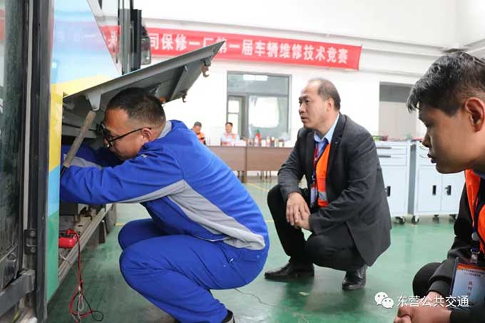 為保證比賽的公平性,本次比賽理論考試試題開考前20分鐘出題打印,實(shí)操比賽裁判由多次參加省內(nèi)公交維修技術(shù)比武的裁判和選手擔(dān)任,并邀請(qǐng)中通客車廠售后服務(wù)經(jīng)理李延營(yíng)同志擔(dān)任主要評(píng)分人員。