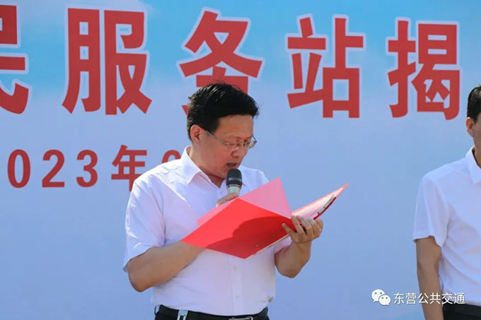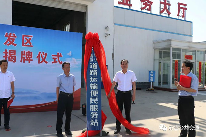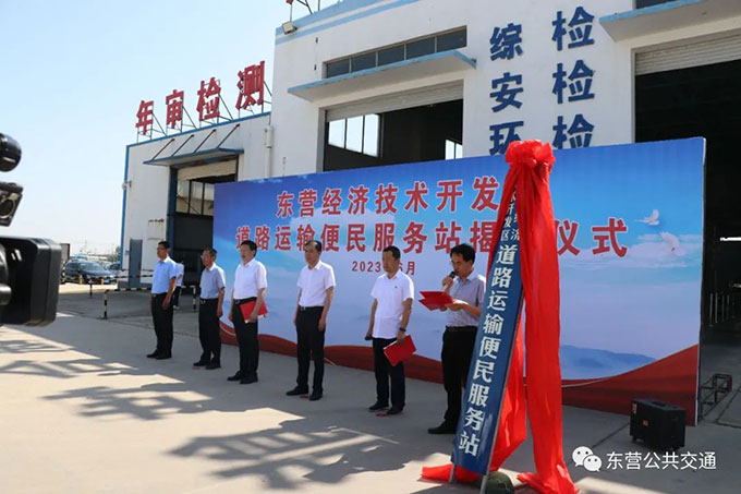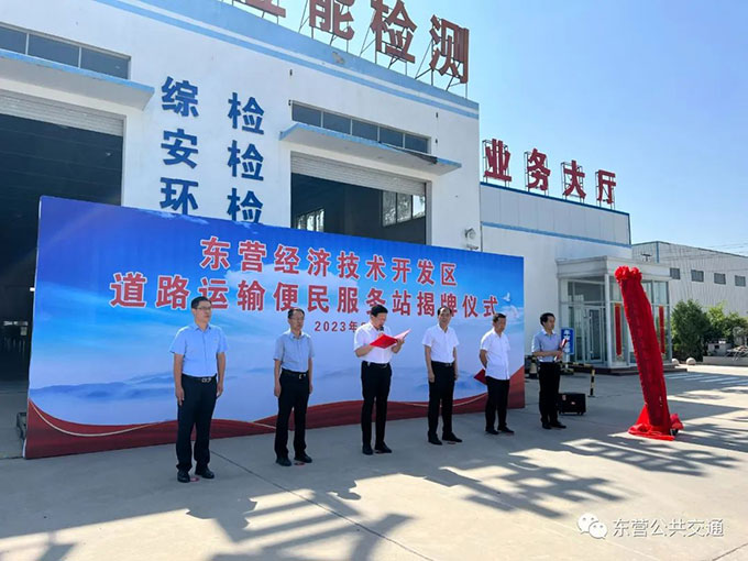 6月9日上午9時(shí),東營(yíng)經(jīng)濟(jì)技術(shù)開(kāi)發(fā)區(qū)首家道路運(yùn)輸便民服務(wù)站揭牌儀式在順通汽車(chē)檢測(cè)站舉行。東營(yíng)經(jīng)濟(jì)技術(shù)開(kāi)發(fā)區(qū)、市公交公司以及部分道路運(yùn)輸企業(yè)代表參加揭牌儀式。