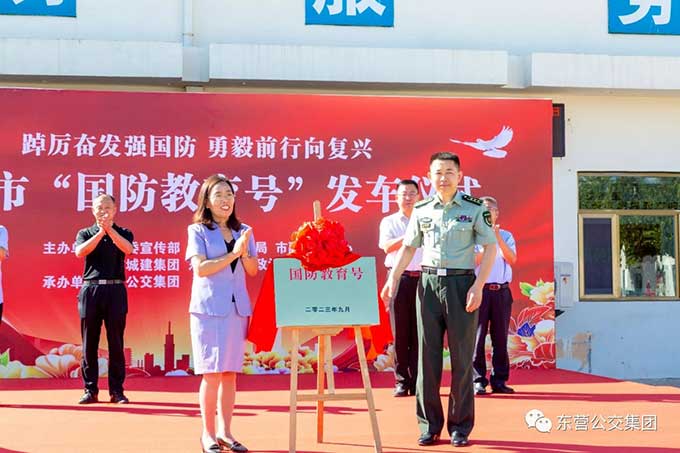 2023年9月14日上午,東營市國防教育號發(fā)車儀式在市公交集團(tuán)隆重舉行。市委宣傳部副部長邱家梅出席儀式并宣布發(fā)車,市交通運輸局黨組成員、副局長戴景鵬致辭,東營軍分區(qū)政治工作處主任王志輝、市融媒體中心副主任趙國防、市城建集團(tuán)黨委副書記張文生、市公交集團(tuán)黨委書記趙龍等參加發(fā)車儀式。