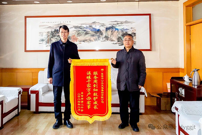 2024年3月6日上午,市二中黨委副書(shū)記、校長(zhǎng)馬占武一行3人來(lái)到市公交集團(tuán),將一面寫(xiě)有“服務(wù)周到細(xì)致護(hù)成長(zhǎng),溫暖千家萬(wàn)戶(hù)辦實(shí)事” 的錦旗送到集團(tuán)公司黨委書(shū)記趙龍同志手中,衷心感謝集團(tuán)公司一直以來(lái)為市二中師生通學(xué)出行提供的安全、周到、細(xì)致的服務(wù)。