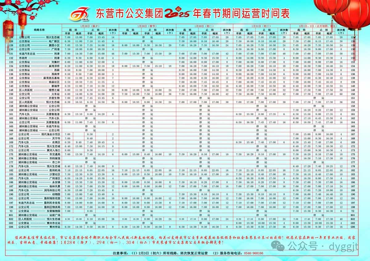 在這個(gè)新春佳節(jié)的美好時(shí)刻,東營市公交集團(tuán)全體干部職工向全市人民致以最誠摯的新年祝福,并向所有關(guān)心、支持我市公交事業(yè)發(fā)展的各級領(lǐng)導(dǎo)和社會(huì)各界人士表示衷心的感謝!愿大家在新的一年里,事業(yè)蒸蒸日上、家庭幸福美滿、吉祥如意、平安喜樂!為了回饋社會(huì)對東營市公交集團(tuán)的深情厚誼與支持,春節(jié)期間,即1月28日(除夕)、1月29日(初一)、1月30日(初二),市民乘坐東營市公交集團(tuán)所屬公交線路(高鐵快線除外)均可享受免費(fèi)乘車服務(wù)!
