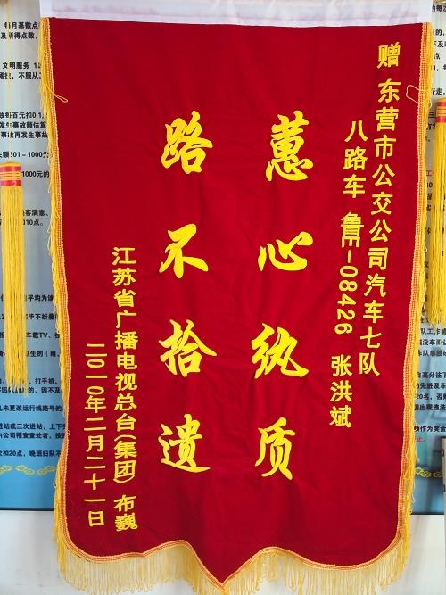 原來(lái),2月20日,初次來(lái)東營(yíng)走親訪友的失主布巍小酌后準(zhǔn)備返程,不小心將手提包丟在8路車上,內(nèi)有DV機(jī)、出國(guó)護(hù)照和工作證等物件,年后就準(zhǔn)備出國(guó)的他非常著急。經(jīng)過(guò)查詢與汽車七隊(duì)取得聯(lián)系,當(dāng)?shù)弥眯鸟{駛員張洪斌已將失物及時(shí)上交車隊(duì),失主布巍非常感動(dòng),因急于趕回單位出國(guó),沒能當(dāng)面致謝,特寄來(lái)錦旗表示謝意。