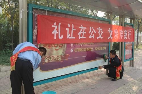 10月16日上午,市公交公司積極響應(yīng)市文明辦開展的“從我做起,走向文明”志愿服務(wù)集中行動,組織公司及車隊后勤人員對城區(qū)410個公交站牌站棚進行了全面清潔,對亂貼亂畫及小廣告進行了徹底清理,并積極疏導(dǎo)乘客排隊上車,維護乘車秩序,用實際行動踐行了“從我做起,走向文明”的活動宗旨,得到了廣大市民的一致好評。