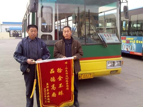 11月17日,家住墾利縣城的李家林先生拿著寫有“拾金不昧、品德高尚”的錦旗來到了市公交公司汽車三隊對李業(yè)縣師傅表示感謝。經(jīng)車隊了解得知,11月10日汽車三隊駕駛員李業(yè)縣在運行完117路班次后正常清理車廂衛(wèi)生時發(fā)現(xiàn)了一個黑色皮包并立即將皮包上交車隊。車隊負責人通過現(xiàn)場清點,發(fā)現(xiàn)皮包內共有現(xiàn)金2600余元,賬單一宗,根據(jù)包里面的信息及時聯(lián)系到失主李家林。當李家林先生看到了失而復得的錢包時,當即拿出200元塞給李業(yè)縣以表示謝意,被李業(yè)縣婉意謝絕?;厝ズ?,李家林先生心情久久不能平靜,特意制做了錦旗送到車隊,以表達感激之情,并要求車隊對李業(yè)縣師傅這種拾金不昧的優(yōu)良品質進行表揚。李業(yè)縣同志作為剛到公交公司參加工作的新員工,在面對失主巨額財物的“誘惑”下,不為利益所動,秉承和發(fā)揚了公交人一貫的高尚品質,他的所作所為充分展現(xiàn)了一名公交駕駛員應有的職業(yè)道德素質。