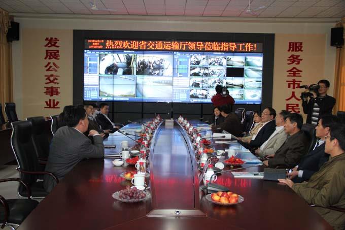4月11日下午,省交通運(yùn)輸廳副廳長(zhǎng)謝濤一行,在市交通運(yùn)輸局黨委書記、局長(zhǎng)李兆君、市公路局局長(zhǎng)王泮清、市交通運(yùn)輸局黨委副書記鄭月成、市公路局副局長(zhǎng)董安林、市運(yùn)管處處長(zhǎng)李??∫约笆泄还窘?jīng)理朱新民等有關(guān)領(lǐng)導(dǎo)的陪同下,到市公交公司對(duì)信息化建設(shè)進(jìn)行了實(shí)地檢查指導(dǎo)。