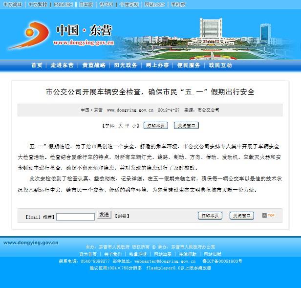 2012年4月27日東營政府網(wǎng)站報道