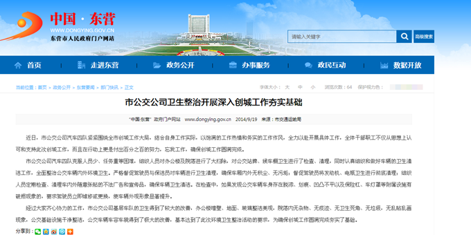 2014年2月19日東營市政府網(wǎng)站報道