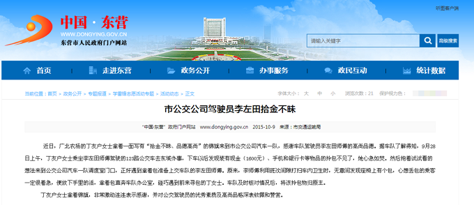 2015年10月9日東營市政府網(wǎng)站報道