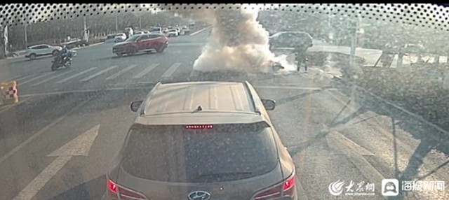 眼看火苗隨風(fēng)越燒越旺,危急時(shí)刻,17路駕駛員張曉良駕駛著魯E97102公交車(chē)運(yùn)行途經(jīng)此處等紅燈,遠(yuǎn)遠(yuǎn)地看到前方冒著火光和滾滾濃煙的電動(dòng)車(chē),他拿起車(chē)載滅火器沖了過(guò)去,“當(dāng)時(shí)路上的行人和車(chē)輛較多,情況十分的危急。”張曉良回憶說(shuō),他沒(méi)顧上仔細(xì)查看,把一瓶滅火器噴完,便抓緊回到車(chē)上繼續(xù)運(yùn)行。
